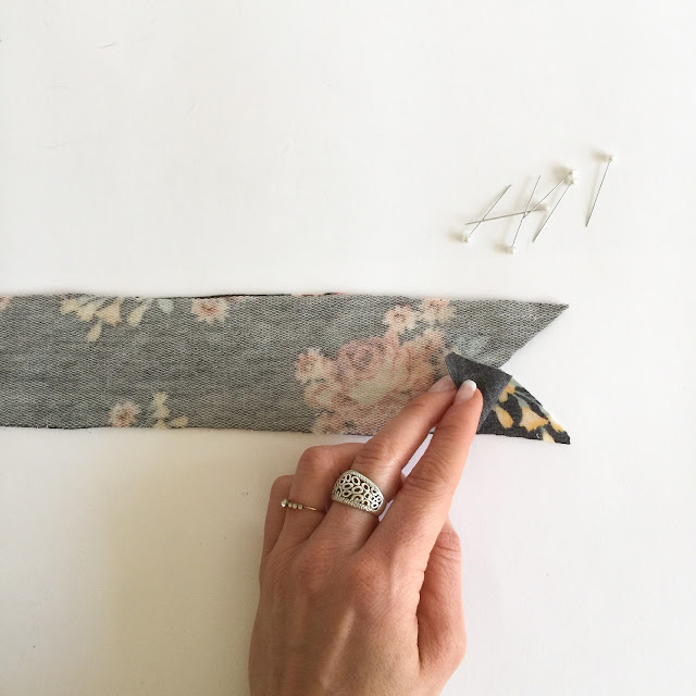 Join the slanted edge together with a 1 cm (3/8") seam allowance.